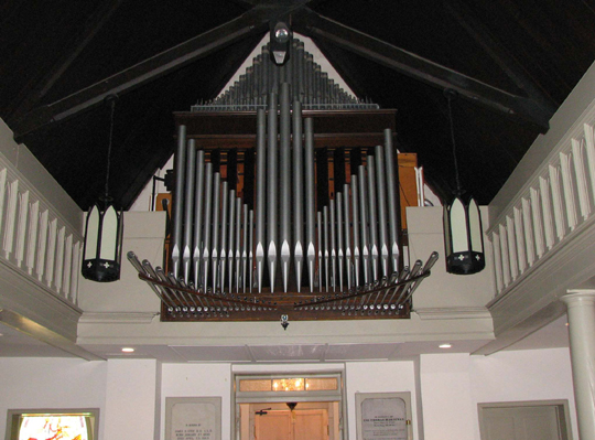 PEDAL 16' Brummbass (ext) 8' Principal GT 8' Gedackt SW 4' Octave GT 4' Gemshorn SW 8' Trompete GT 4' Trompete GT Source: Melvin Potts The Schantz replaced a 1938 Pilcher, which in turn replaced an 1895 Pilcher